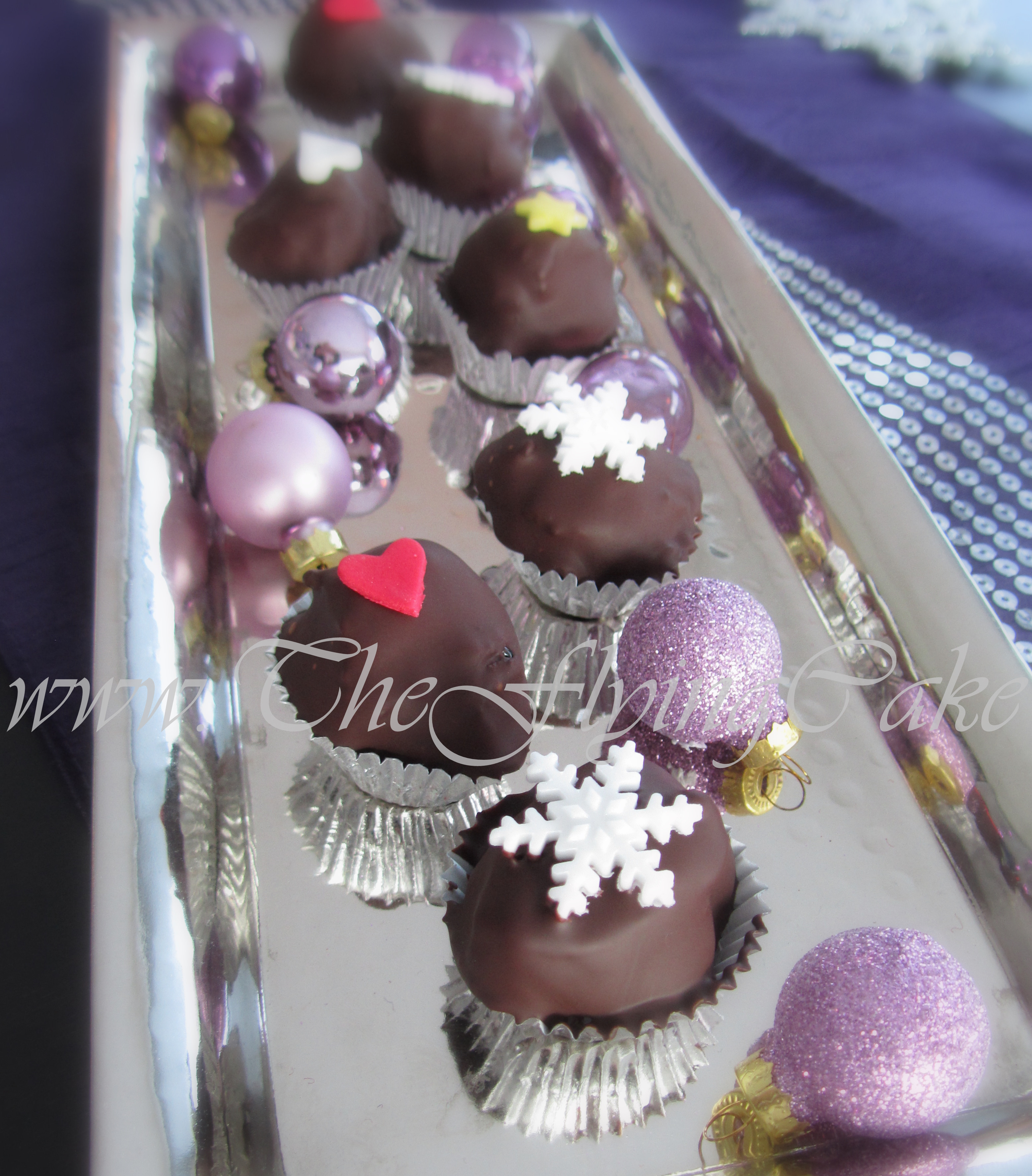 Bland sammen til en mørk fin masse, lag små kuler (ca 20-22) sett kaldt enten i frys eller i kjøl en time, dyppes i sjokolade: Ca 200 gr sjokolade + 1 liten ss delfiafett.