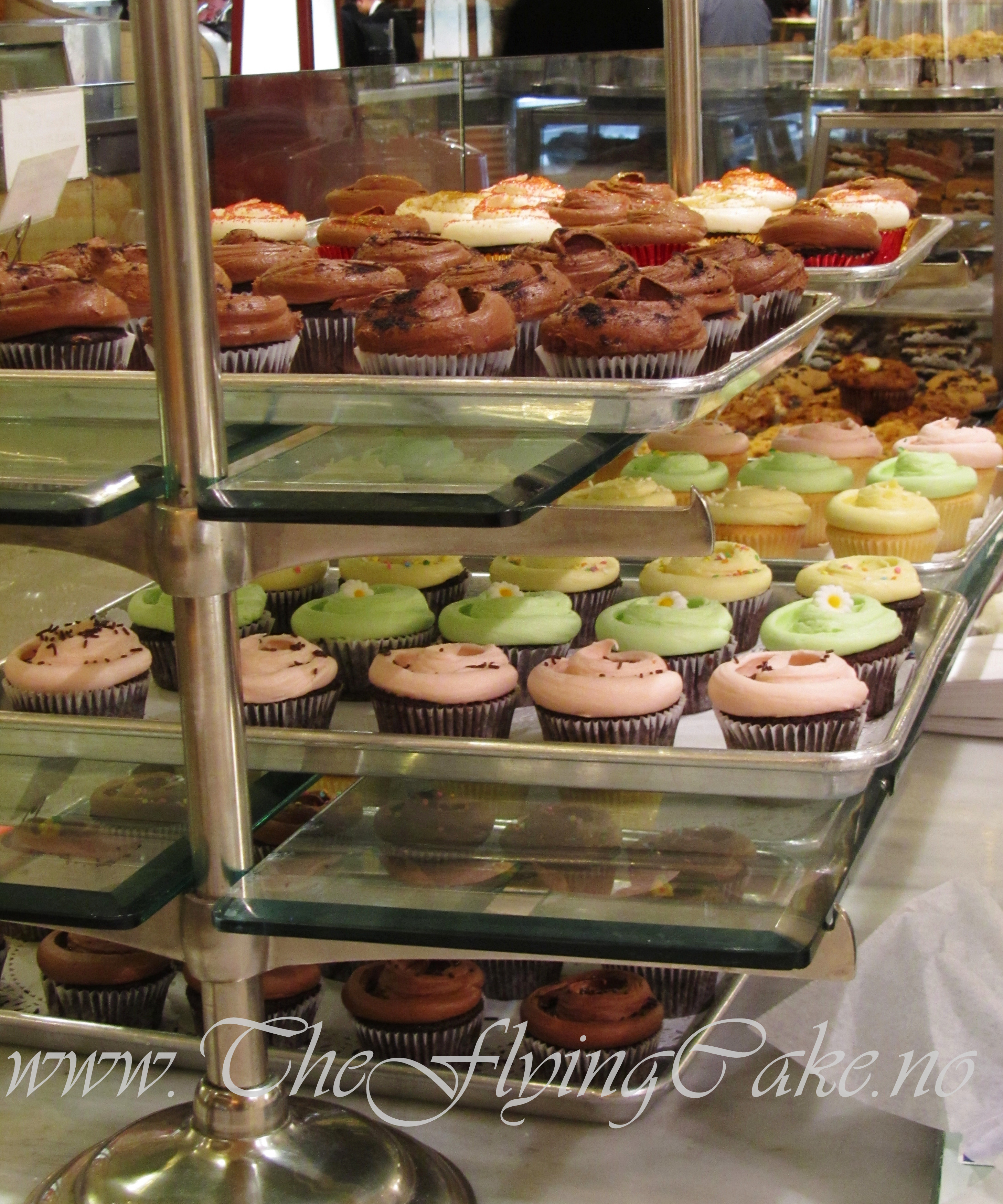 I New York, så finnes det et bakeri på nesten et hvert gatehjørne, her er det bare å nyte fersk bakst og et enormt utvag av de fineste kaker. Magnolia bakery, (berømt for sine cupcakes gjennom sex og singelliv) er et must, og innfridde absolutt våre forventninger! Jeg hadde med min lille jente, og sammen smakte vi oss gjennom alle cupcakene, nylaget og ferske fremstod de som amerikanske, men og gode:-)Dessuten tok de veldig godt i mot oss og vi fikk være med å lage den berømte toppingen som lages ved hjelp av palett og ikke sprøytepose med tip! Zaro’s har og bugnende disker fulle av de fineste kakere, men disse kakene smaker ikke helt som vi nordmenn er vant med; litt tørrere bunner, smørkremer i alle former og kokosmasser, er enda et stykke unna, og dermed ble og nye Cake Boss cafe nær Times Square og ikke helt som forventet med full cafe og utsolgt for de berømte cannolis. Blir nok en tur til New Jersey og Carlo’s neste gang tenker jeg… New York er herlig med fantastisk shopping og opplevelser, men en kan lett skjemmes vekk med pannekaker med lønnesirup til frokost eller cupcakes til lunsj, så pass på å ikke gå i fellen… N.Y Cake på 23 street var ikke det enkleste å finne, men jammen var det verdt den ekstra innsatsen! Stor fin butikk når du kommer innforbi, med mye mer enn du noen gang klarer å få bruk for eller får plass til med hjem. Her stilles og ut vinnerkaker og hyggelig betjening syntes det var stor stas med besøk fra Norge og skjemte godt bort mitt lille perfekte reisefølge:-)